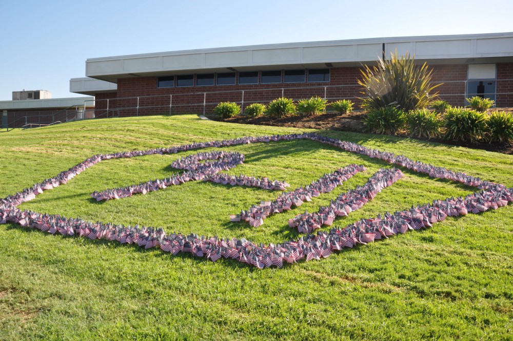 Photo Caption: Walnut High students placed nearly 3,000 flags in front of the campus to mark the anniversary of 9/11.