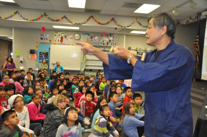 Walnut – Children’s author, Sunny Seki, introduced his tales of Japanese folklore to Walnut Elementary students during a visit on December 5.Before Seki was a published author, he was busy telling stories to his nine children at bedtime. Over the years, as the stories multiplied and developed into slideshows, his wife Judy suggested that he write children’s books. The couple eventually closed a successful photography business so Seki could pursue his dream of becoming a full-time author/illustrator.