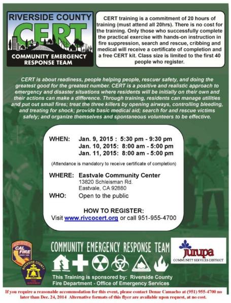 To register, visit www.rivcocert.org or call 951-955-4700.