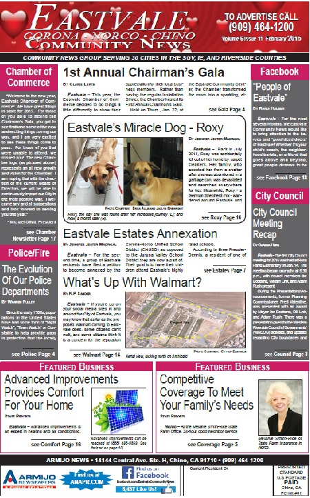 The Eastvale Community News covers local news for Eastvale, Norco, Corona, and Chino. Click here Eastvale February 2015 to access the complete issue in pdf format.