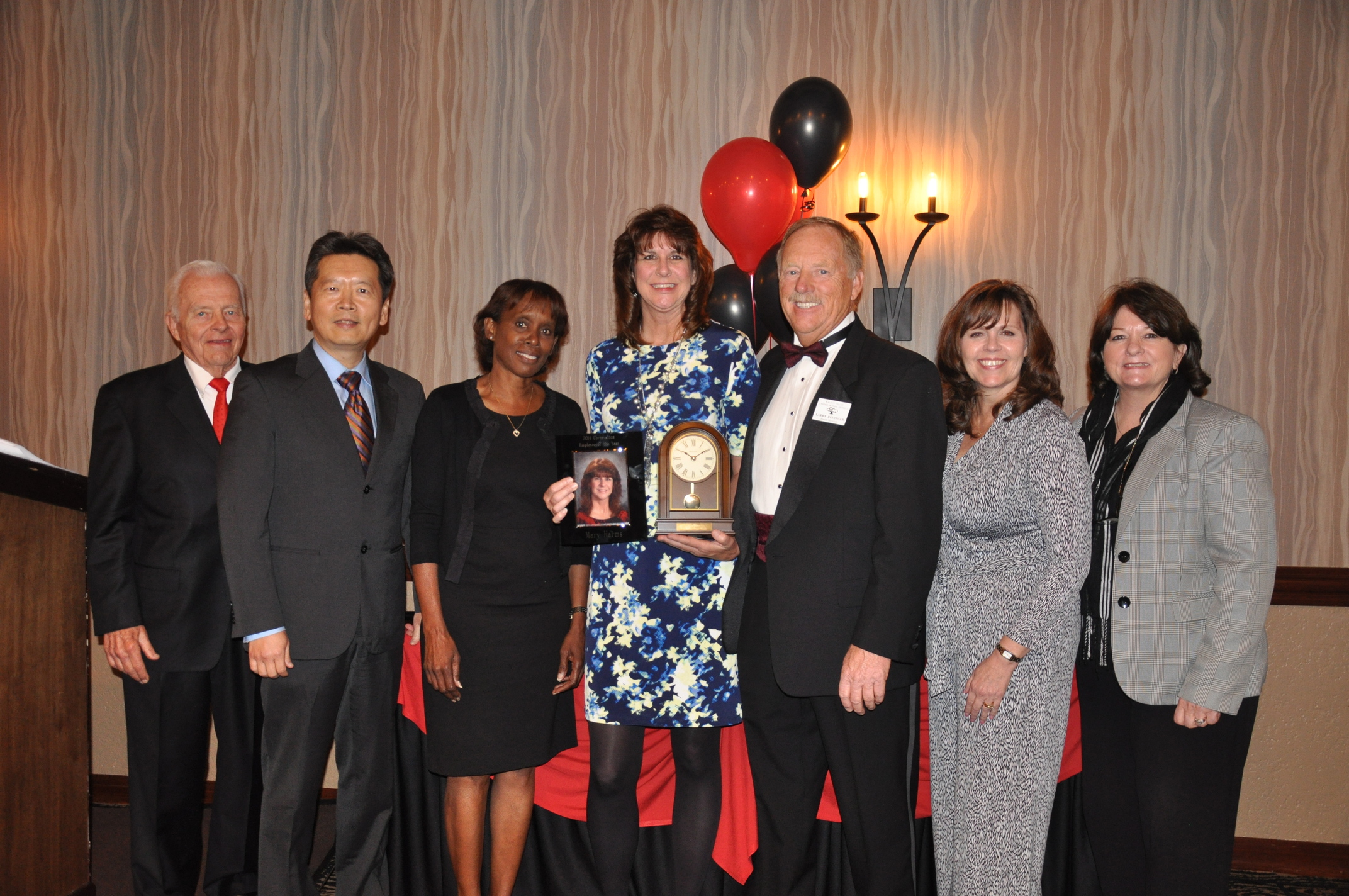 Mary Harms was crowned 2014 Classified Employee of the Year at the “A Class Act” Cornerstone Awards Gala on Feb. 19 (shown with Board Members Dr. Tony Torng, Helen Hall, Larry Redinger, Cindy Ruiz, and Personnel Commissioners Ron Everett and Gayle Pacheco).