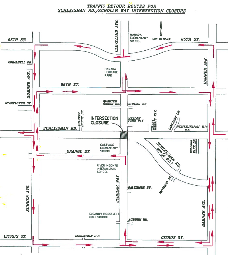 According to the City of Eastvale, as the new roadway is nearing completion, you are being advised that the intersection of Schleisman and Scholar will be closed to all traffic beginning on Fri., Mar. 27, at 6 p.m. This will allow for the permanent closure of Schleisman Road east of Scholar Way to vehicular traffic, and for the preparation of a major transfer of the east-west traffic on to the new Schleisman Road upon opening of the intersection at 6 pm on Sun., Mar. 29.