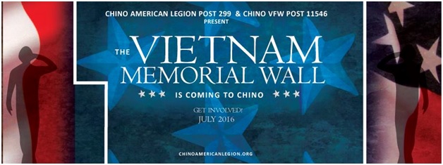 Chino – The Chino American Legion, Chino VFW, and the City of Chino are working together as sponsors to bring the Vietnam Memorial Wall to the City next summer.