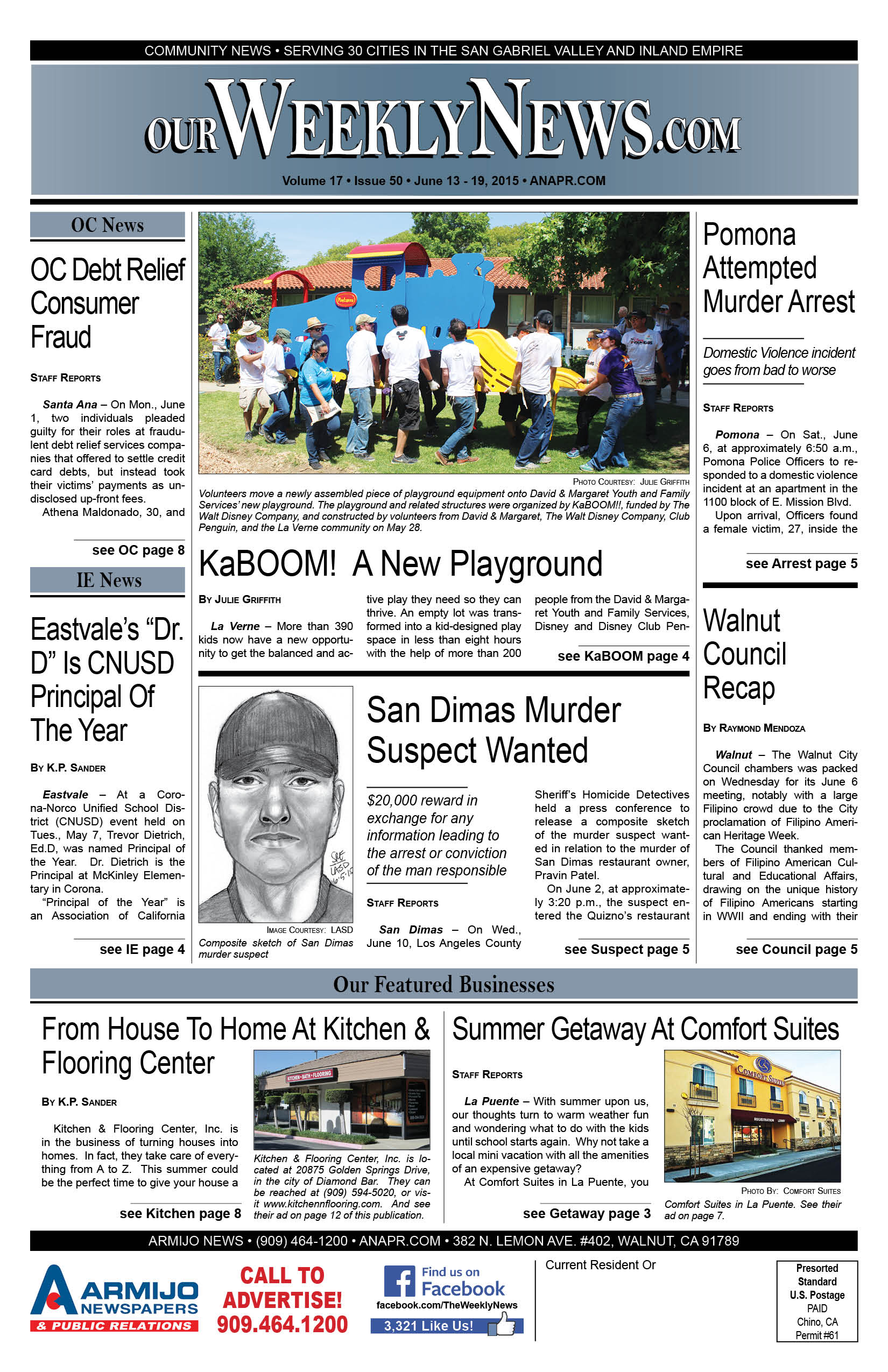 The Weekly News covers community news for Diamond Bar, Walnut, Chino Hills, Rowland Heights and surrounding areas of San Gabriel Valley and the Inland Empire. Click this link to access the complete issue in PDF format: 2015-June13-Weekly-WEB