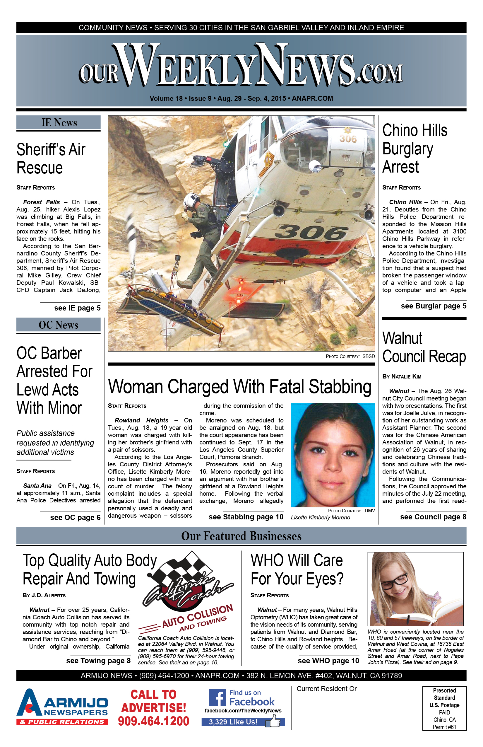 The Weekly News covers community news for Diamond Bar, Walnut, Chino Hills, Rowland Heights and surrounding areas of San Gabriel Valley and the Inland Empire. Click this link to access the complete issue in PDF format: 2015-Aug29-Weekly-WEB