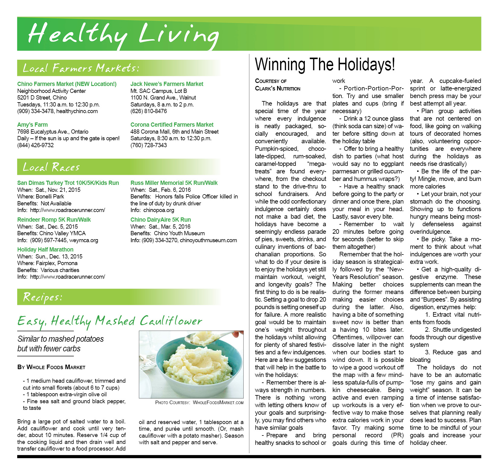 The newest addition to OurWeeklyNews is our Healthy Living Page. Read this page for health tips, recipes, farmer’s markets and more! Click this link to access the full Healthy Living Page in PDF format:2015-Nov21-Weekly-HEALTHY