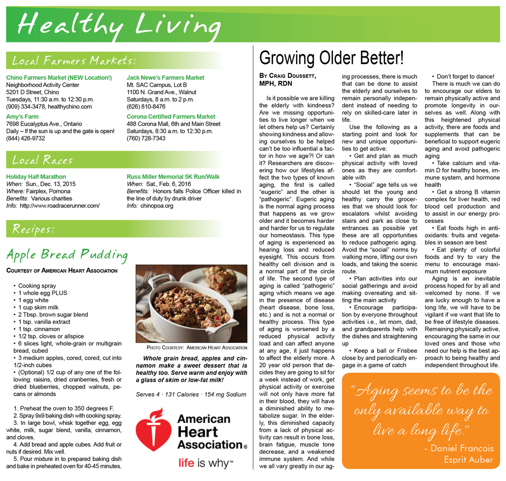 The newest addition to OurWeeklyNews is our Healthy Living Page. Read this page for health tips, recipes, farmer’s markets and more! Click this link to access the full Healthy Living Page in PDF format:2015-Dec12-Weekly-HEALTHY