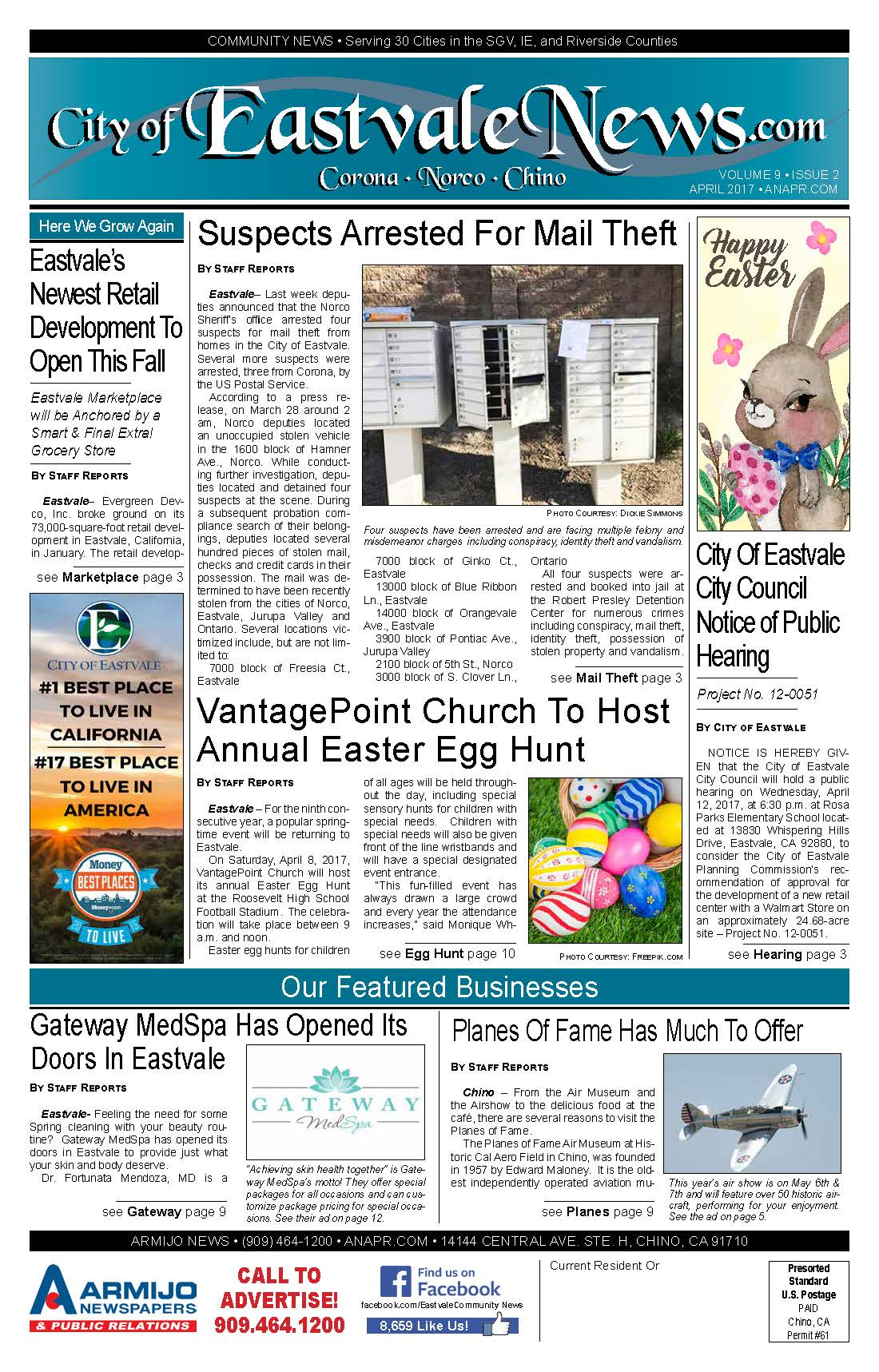The Eastvale Community News covers local news for Eastvale, Norco, Corona, and Chino. Click the following link to access the complete issue in pdf format: 2017-04.Eastvale