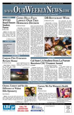 The Weekly News covers community news for Chino, Chino Hills, Diamond Bar, Walnut, Rowland Heights and surrounding areas of San Gabriel Valley and the Inland Empire.Click this link to access the complete issue in PDF format: WEB.Weekly9.30.2017