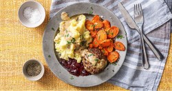 with Mashed Potatoes, Roasted Carrots and Currant Jam