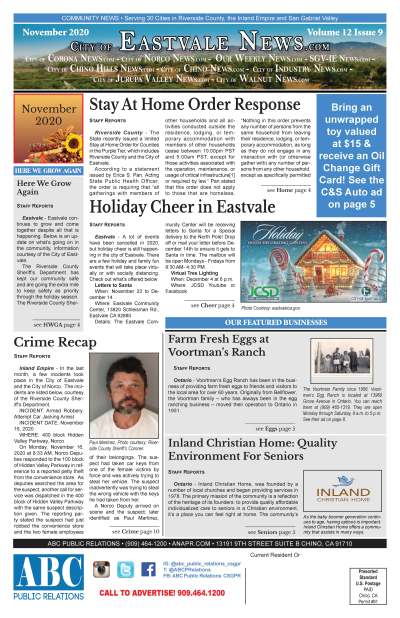 The City of Eastvale News covers local news for Eastvale, Norco, Corona, Jurupa Valley, Mira Loma, Chino, Chino Hills and more. Click the following link to access the complete issue in pdf format: