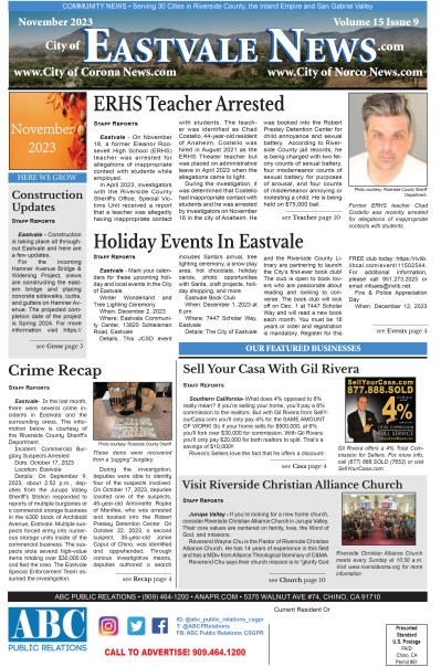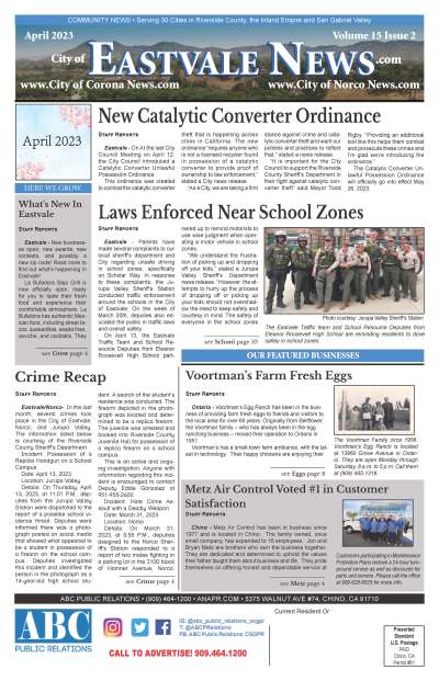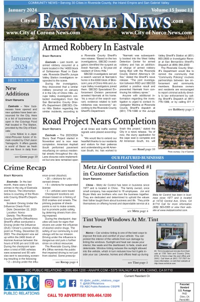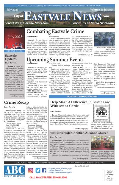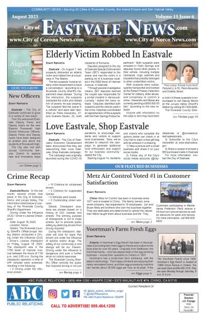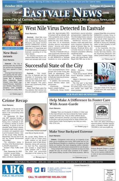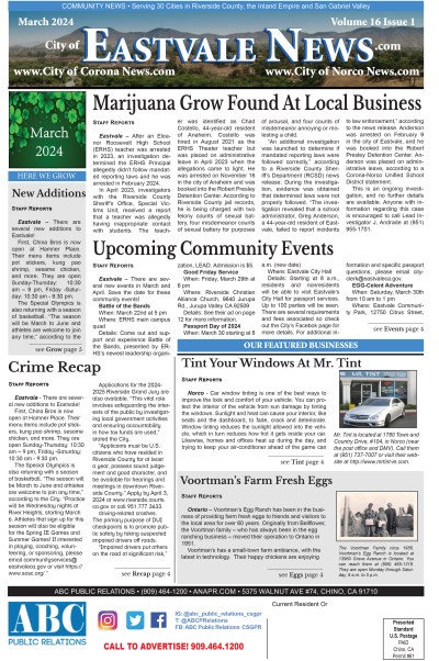 The City of Eastvale News covers local news for Eastvale, Norco, Corona, Jurupa Valley, Mira Loma, Chino, Chino Hills and more. Click the following link to access the complete issue in pdf format: