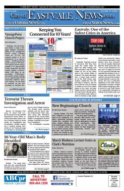 The City of Eastvale News covers local news for Eastvale, Norco, Corona, Jurupa Valley, Mira Loma, Chino, Chino Hills and more. Click the following link to access the complete issue in pdf format: