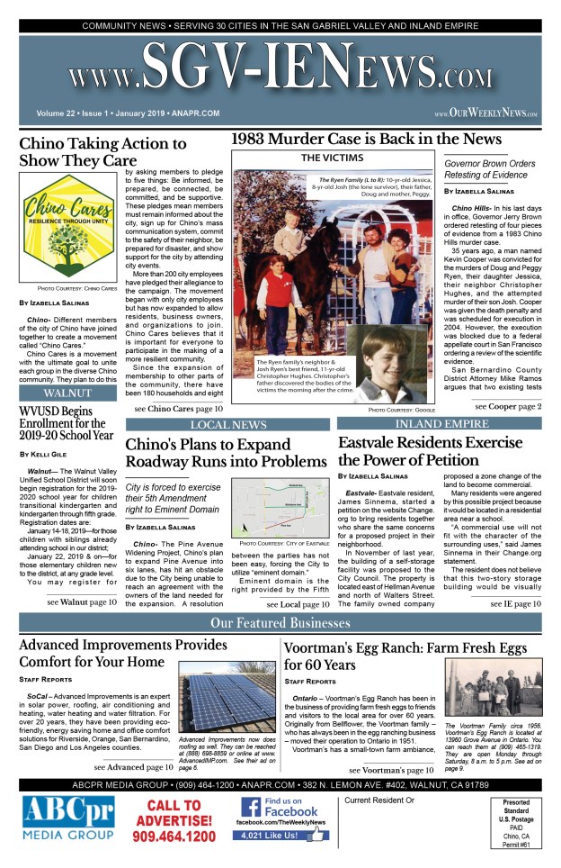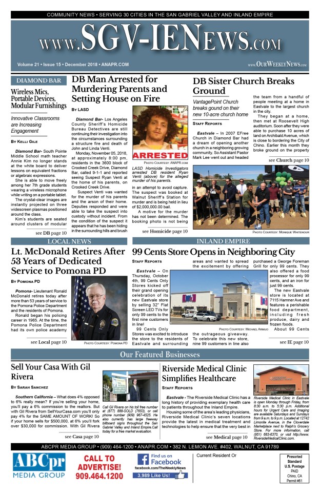 The SGV-IE News covers local news for Walnut, Diamond Bar, Chino, Chino Hills and the surrounding areas. Click the following link to access the complete issue in pdf format: https://anapr.com/wp-content/uploads/2018/12/2018-12-sgvienews.pdf