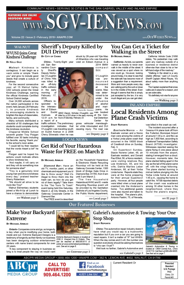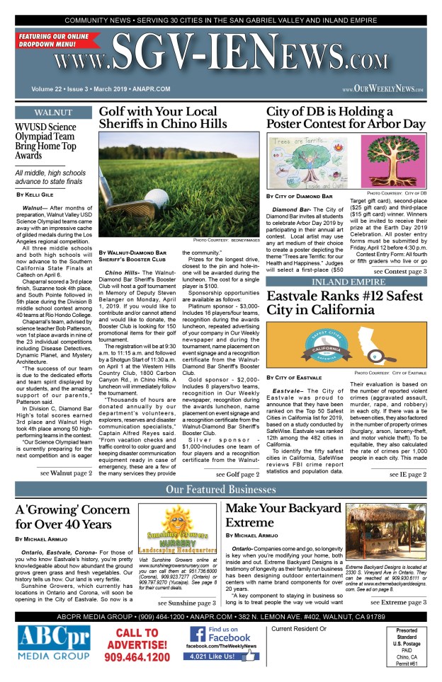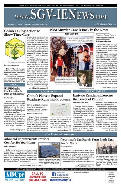 The SGV-IE News covers local news for Walnut, Diamond Bar, Chino, Chino Hills and the surrounding areas. Click the following link to access the complete issue in pdf format: https://anapr.com/wp-content/uploads/2019/03/2019-02-sgvienews.pdf