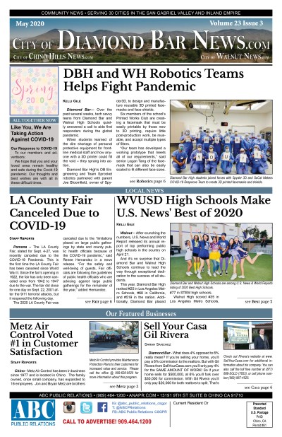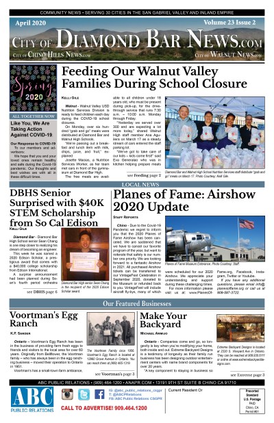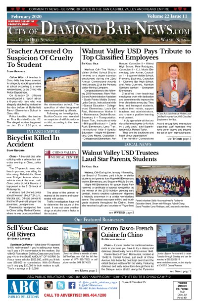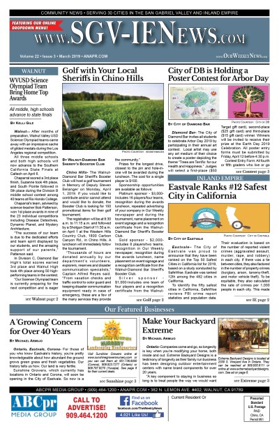 The SGV-IE News covers local news for Walnut, Diamond Bar, Chino, Chino Hills and the surrounding areas. Click the following link to access the complete issue in pdf format: