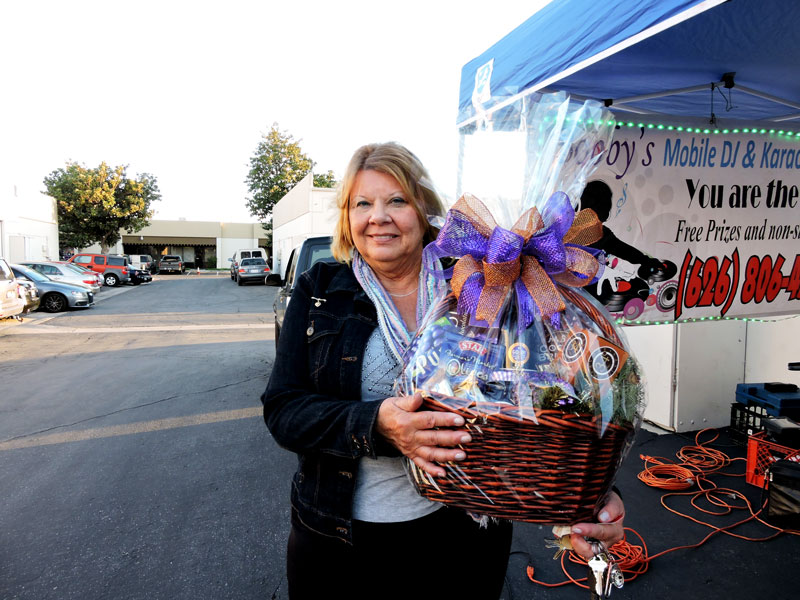 Karen Kaplan won a goodie basket donated by Marcia McBean of Chino Commercial Bank. Call Marcia at (909) 230-7600.