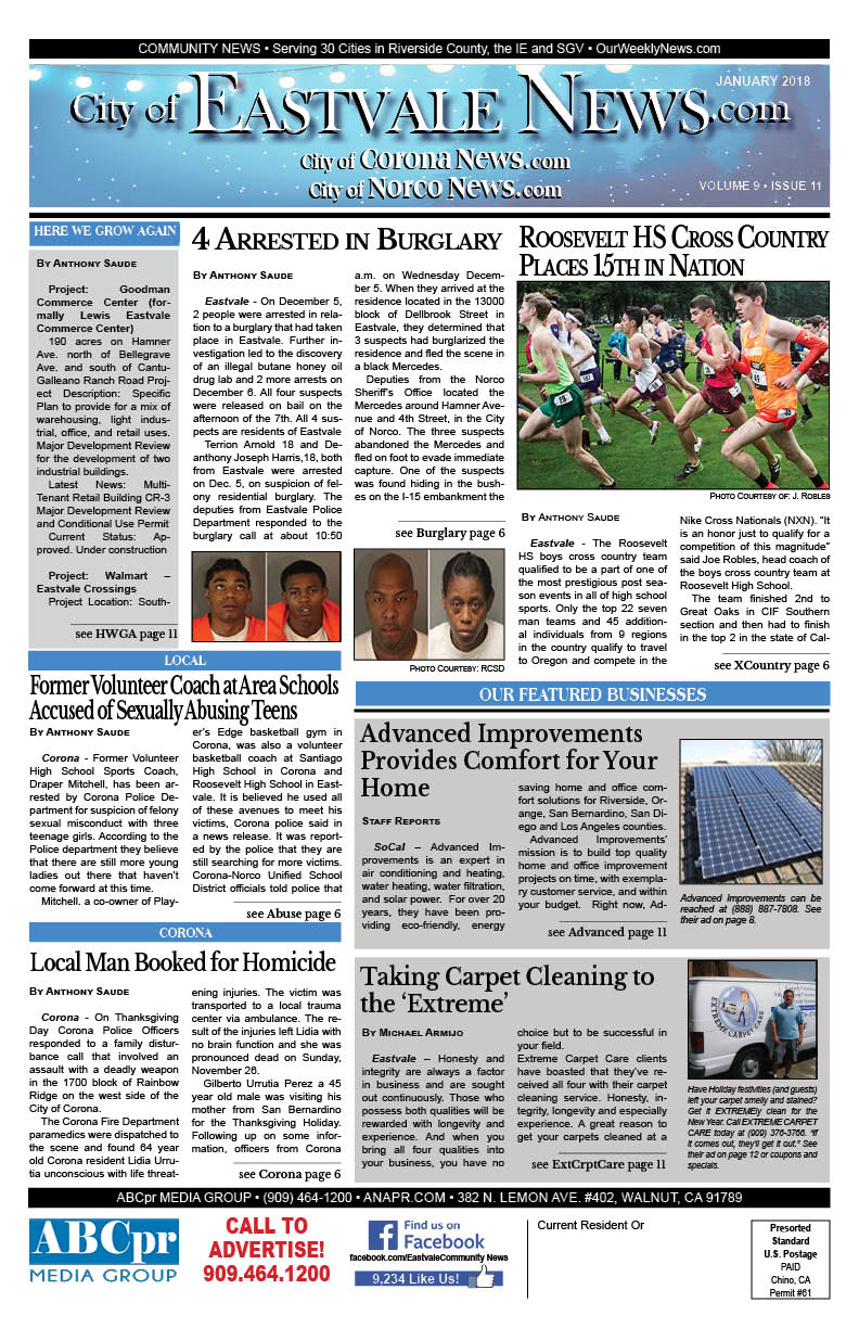 The Eastvale Community News covers local news for Eastvale, Norco, Corona, and Chino. Click the following link to access the complete issue in pdf format: EastvaleNews.12-2017