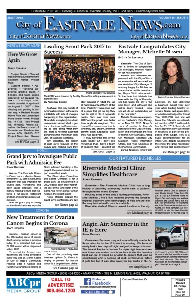 The Eastvale Community News covers local news for Eastvale, Norco, Corona, and Chino. Click the following link to access the complete issue in pdf format: Eastvale.June2018