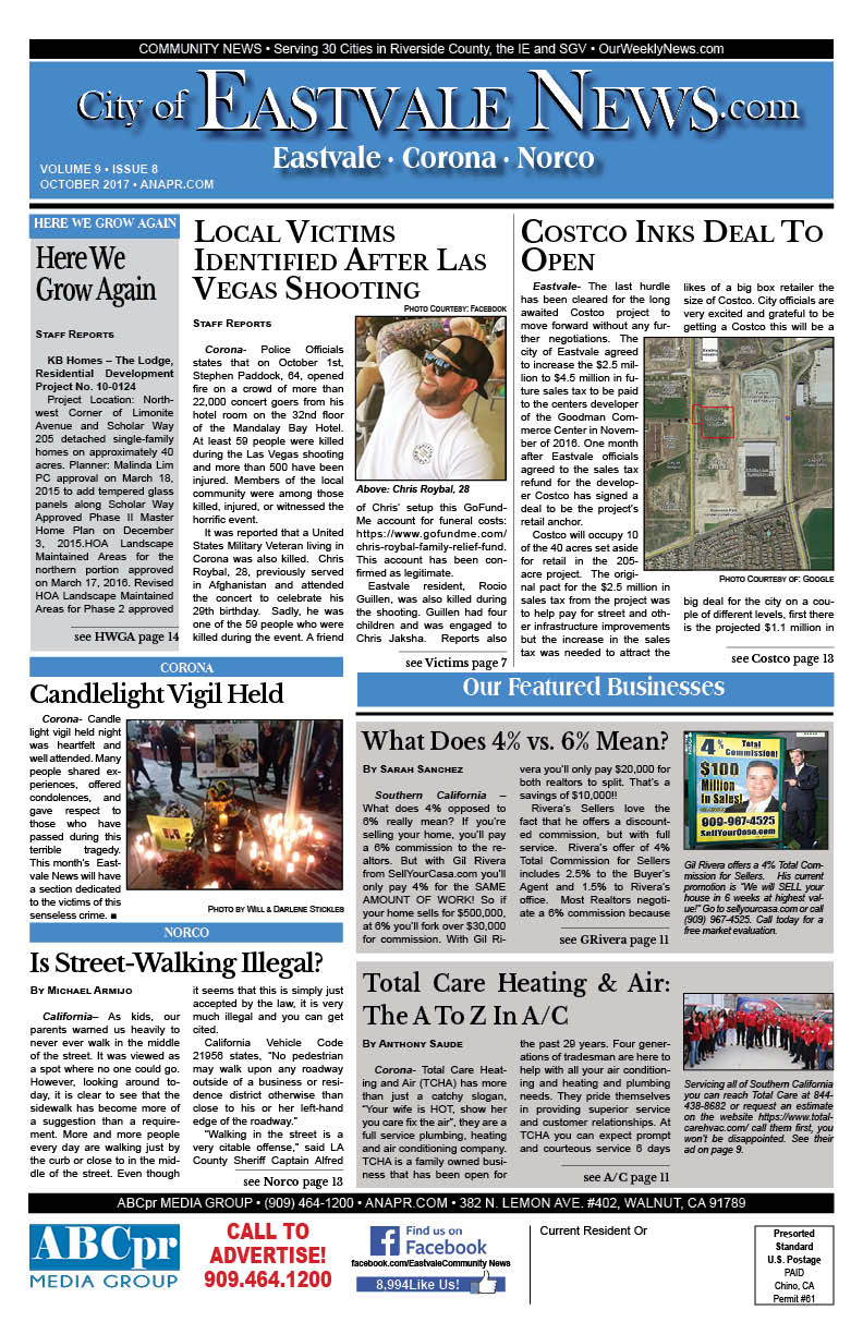 The Eastvale Community News covers local news for Eastvale, Norco, Corona, and Chino. Click the following link to access the complete issue in pdf format: EastvaleNews.10-2017