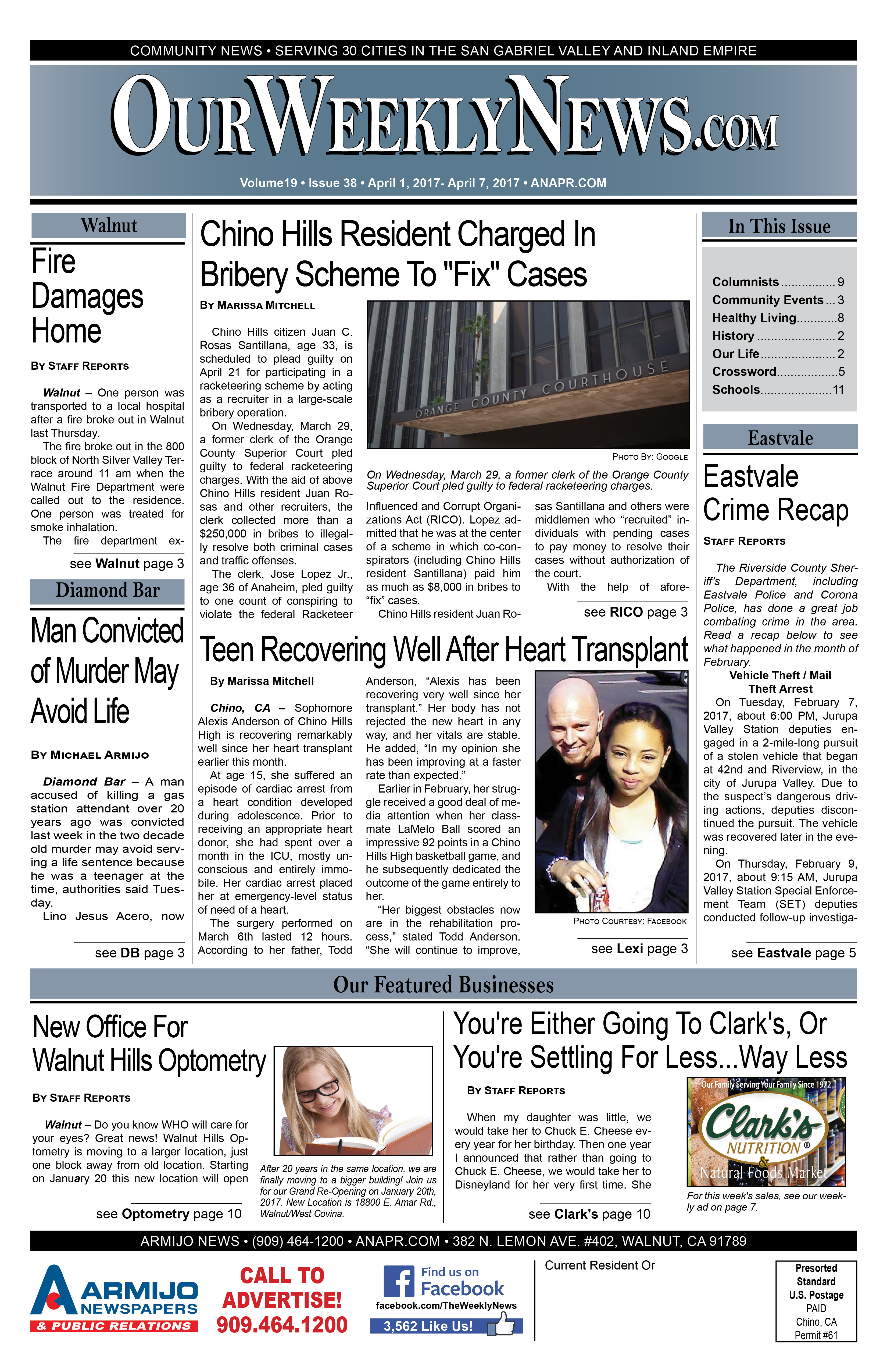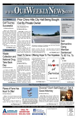 The Weekly News covers community news for Chino, Chino Hills, Diamond Bar, Walnut, Rowland Heights and surrounding areas of San Gabriel Valley and the Inland Empire. Click this link to access the complete issue in PDF format: 04-01.2017OurWeeklyNews