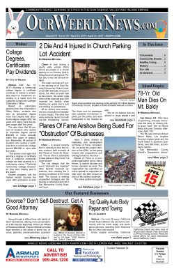 The Weekly News covers community news for Chino, Chino Hills, Diamond Bar, Walnut, Rowland Heights and surrounding areas of San Gabriel Valley and the Inland Empire. Click this link to access the complete issue in PDF format: Weekly Full PDF 4.8.17