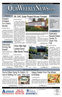 The Weekly News covers community news for Chino, Chino Hills, Diamond Bar, Walnut, Rowland Heights and surrounding areas of San Gabriel Valley and the Inland Empire. Click this link to access the complete issue in PDF format: OurWeeklyNews Full PDF 3.18.17