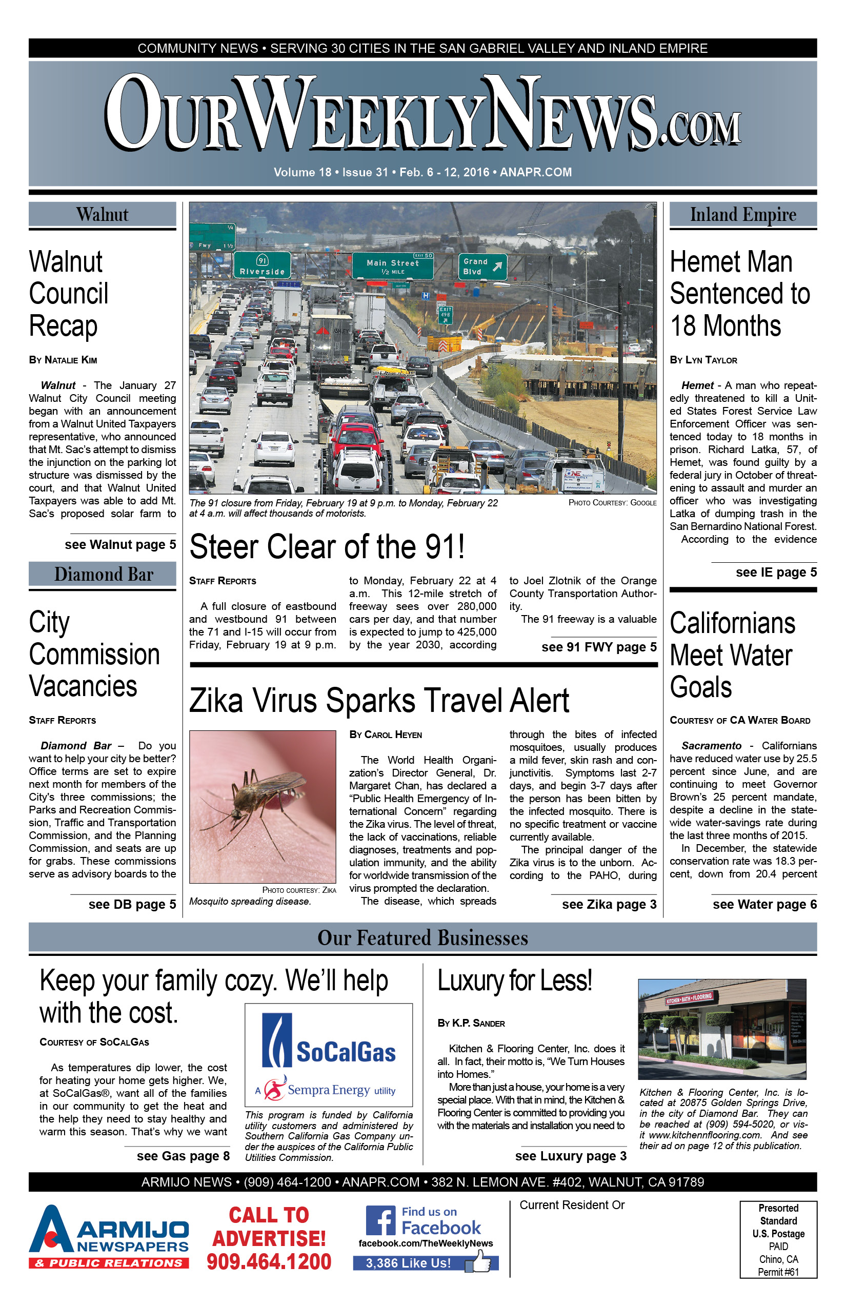 The Weekly News covers community news for Chino, Chino Hills, Diamond Bar, Walnut, Rowland Heights and surrounding areas of San Gabriel Valley and the Inland Empire. Click this link to access the complete issue in PDF format:2016-Feb6-Weekly- WEB
