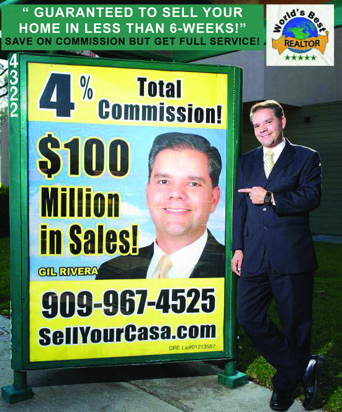 Southern California – What does 4% opposed to 6% really mean? If you’re selling your home, you’ll pay a 6% commission to the realtors. But with Gil Rivera from SellYourCasa.com you’ll only pay 4% for the SAME AMOUNT OF WORK! So if your home sells for $500,000, at 6% you’ll fork over $30,000 for commission. With Gil Rivera you’ll only pay $20,000 for both realtors to split. That’s a savings of $10,000!!