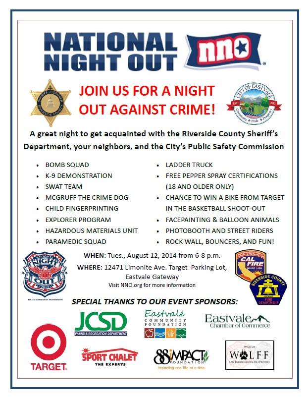 Events that were registered online received visits by the City Council Members, Deputies, Firefighters, Citizens on Patrol, and even McGruff the crime-fighting dog will be taking place.