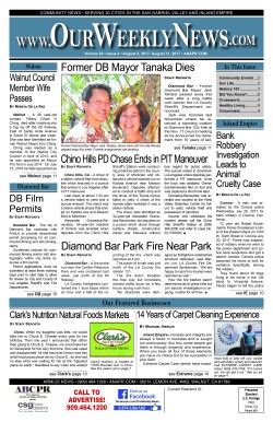 The Weekly News covers community news for Chino, Chino Hills, Diamond Bar, Walnut, Rowland Heights and surrounding areas of San Gabriel Valley and the Inland Empire.Click this link to access the complete issue in PDF format:OurWeekly.2017-07-29 (1)