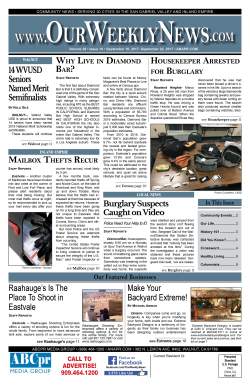 The Weekly News covers community news for Chino, Chino Hills, Diamond Bar, Walnut, Rowland Heights and surrounding areas of San Gabriel Valley and the Inland Empire.Click this link to access the complete issue in PDF format: ALL.9.23.17Weekly